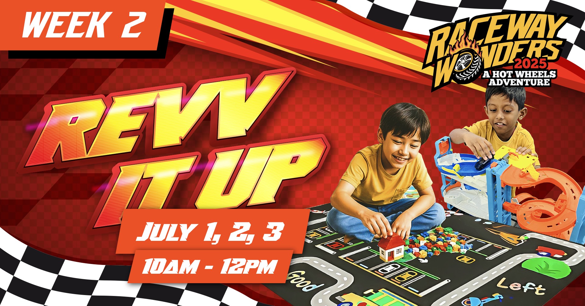 π Raceway Wonders school holiday program is back for 2025 Week 2 is 'Revv it Up' π Shift gears into creativity during Revv it UpβWeek 2 of Raceway Wonders! This is your chance to build your own car-themed world using colourful mats, building blocks, and imaginative props. Whether itβs mini garages, bustling motor cities, or